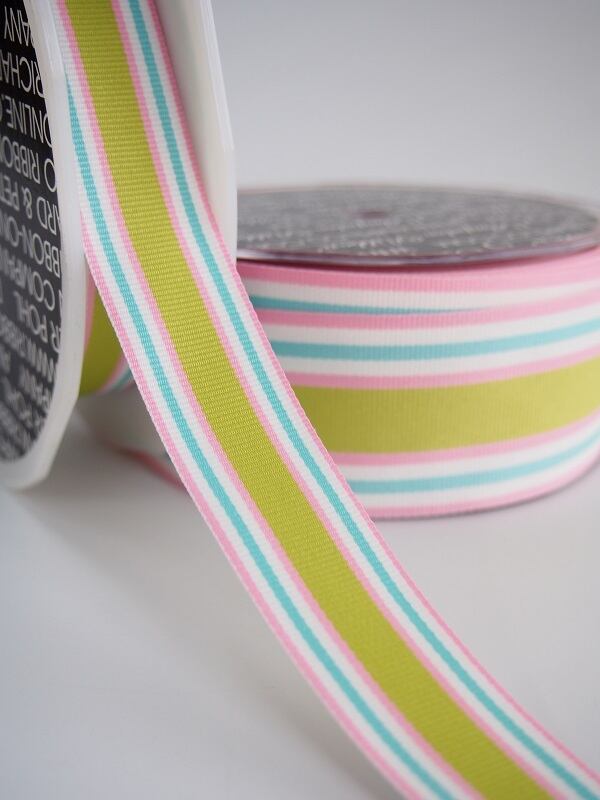 グリーン系の配色がすっきりしたストライプのグログランリボン。